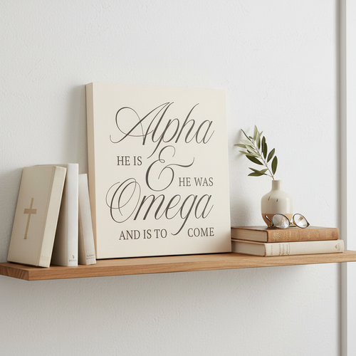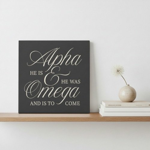 Alpha & Omega Canvas Wall Art — “He Is, He Was, And Is To Come” Stretched Matte Canvas
